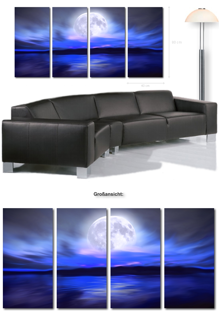 “ Blue Night ” von Salvatore - 160 x 80 cm - 4 Bilder, je 40 x 80 cm auf echter Künstler-Leinwand inkl. Keilrahmen! Nur 149,- €