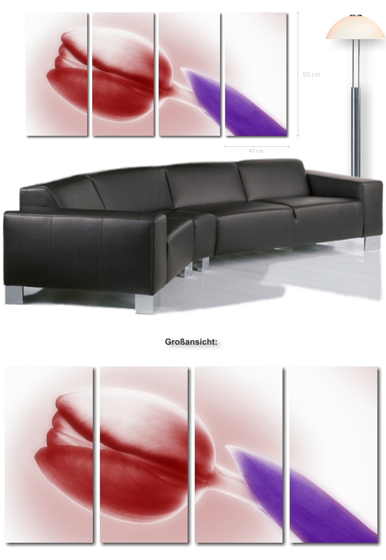“ Tulipano ” von Salvatore - 160 x 80 cm - 4 Bilder, zu je 40 x 80 cm auf echter Künstler-Leinwand inkl. Keilrahmen! Nur 149,- €