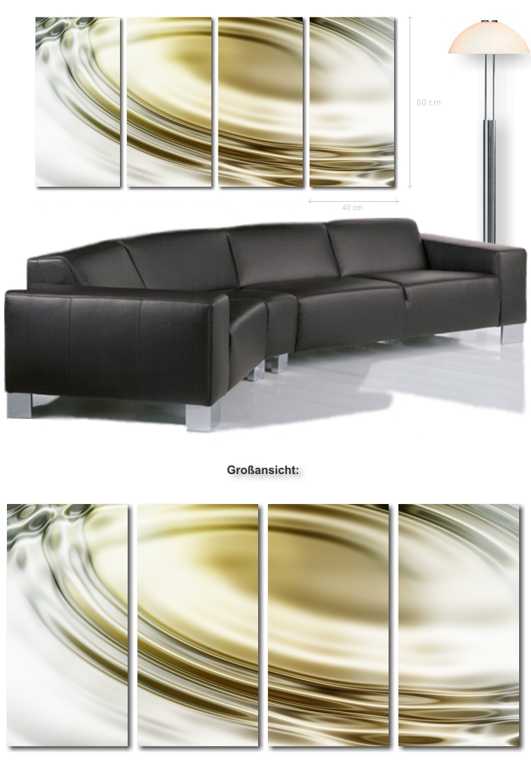 “ Golden Fluid ” von Salvatore - 160 x 80 cm - 4 Bilder, je 40 x 80 cm auf echter Künstler-Leinwand inkl. Keilrahmen! Nur 149,- €