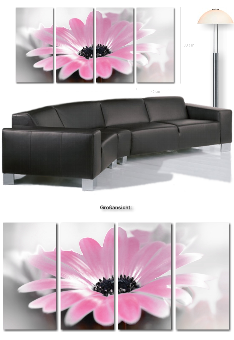 “ Fiore Rosa ” von Salvatore - 160 x 80 cm - 4 Bilder, je 40 x 80 cm auf echter Künstler-Leinwand inkl. Keilrahmen! Nur 149,- €