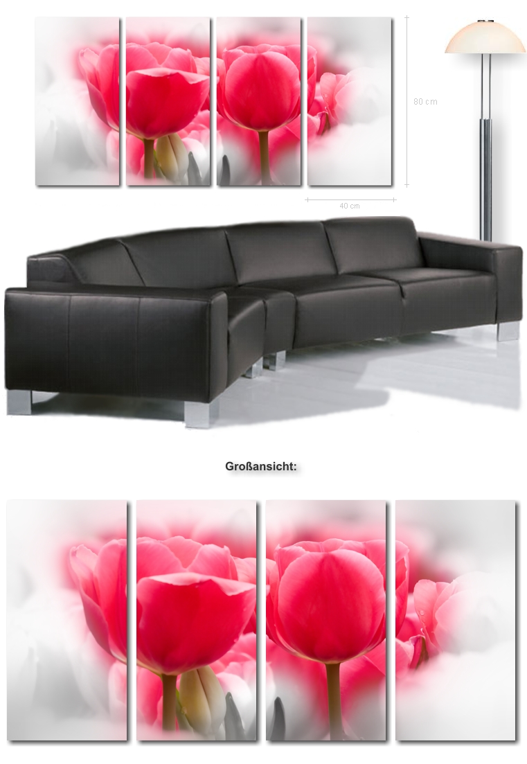 “ Tulips ” von Salvatore - 160 x 80 cm - 4 Bilder, je 40 x 80 cm auf echter Künstler-Leinwand inkl. Keilrahmen! Nur 149,- €