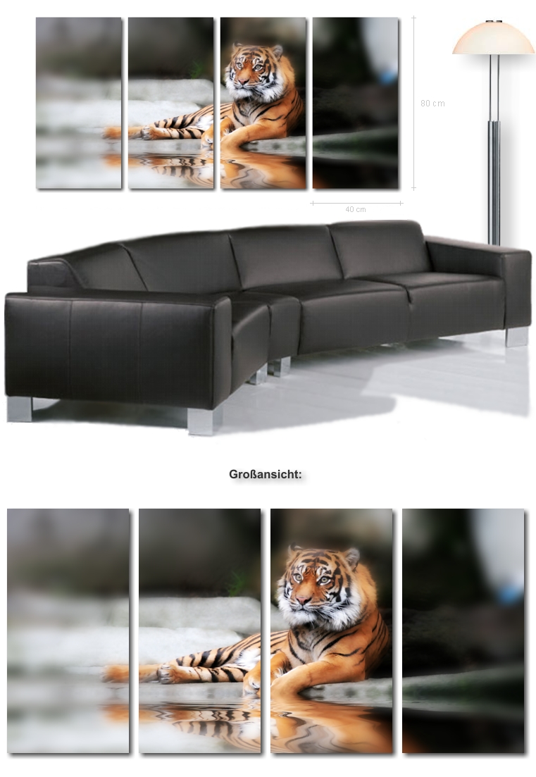 “ Tiger ” von Salvatore - 160 x 80 cm - 4 Bilder, zu je 40 x 80 cm auf echter Künstler-Leinwand inkl. Keilrahmen! Nur 149,- €