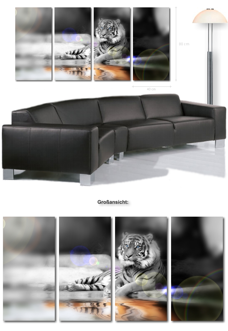 “ Tiger 3 ” von Salvatore - 160 x 80 cm - 4 Bilder, je 40 x 80 cm auf echter Künstler-Leinwand inkl. Keilrahmen! Nur 149,- €